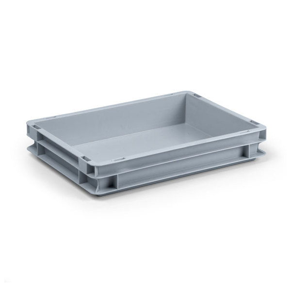 Contenitore in plastica sovrapponibile Norma Europa (misure standardizzate per essere utilizzate con Europallet) molto robusto e versatile che può essere usato anche per il contatto alimentare.