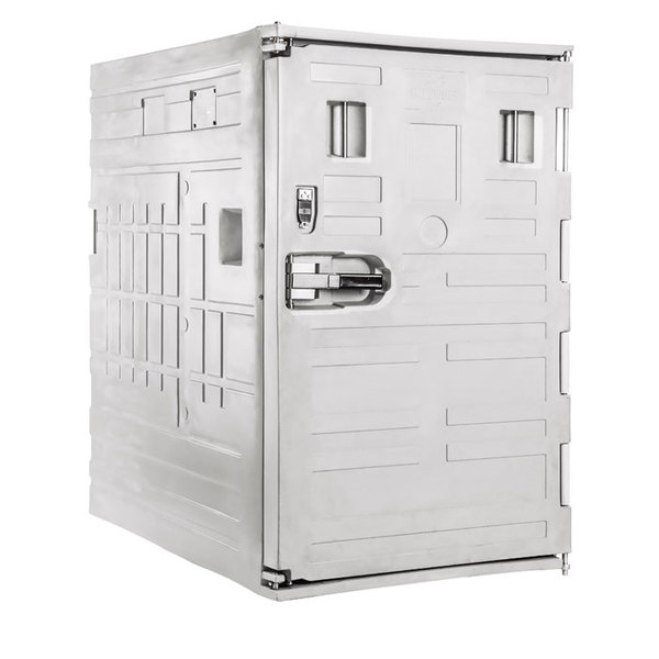 Contenitore isotermico in plastica (HDPE) per alimenti con dimensioni 1405 L x 985 P x 1525 H mm, capacità 1350 litri con apertura frontale e omologabile ATP per trasporto di fresco o surgelato